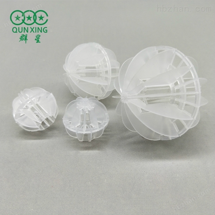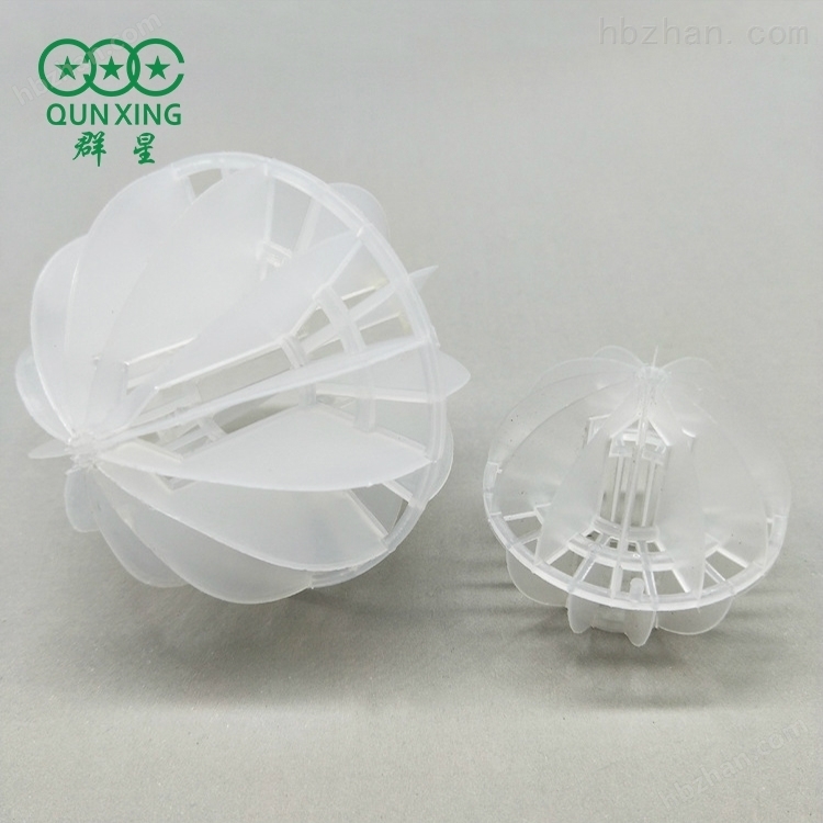 塑料多面空心球是一种由聚丙烯(PP)等塑料制成的球形填料,主要用于水处理及气体净化设备,具有比表面积大、空隙率高、阻力小等特点。